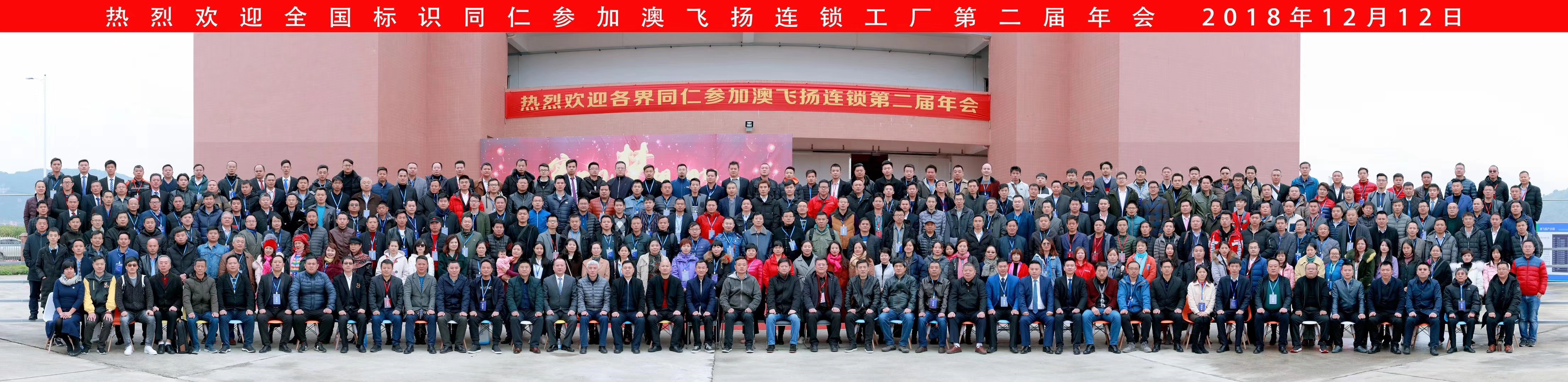 廣東澳飛揚(yáng)標(biāo)識(shí)產(chǎn)業(yè)園第二屆年會(huì)集體合影,來自五湖四海的各界同仁歡聚一堂。